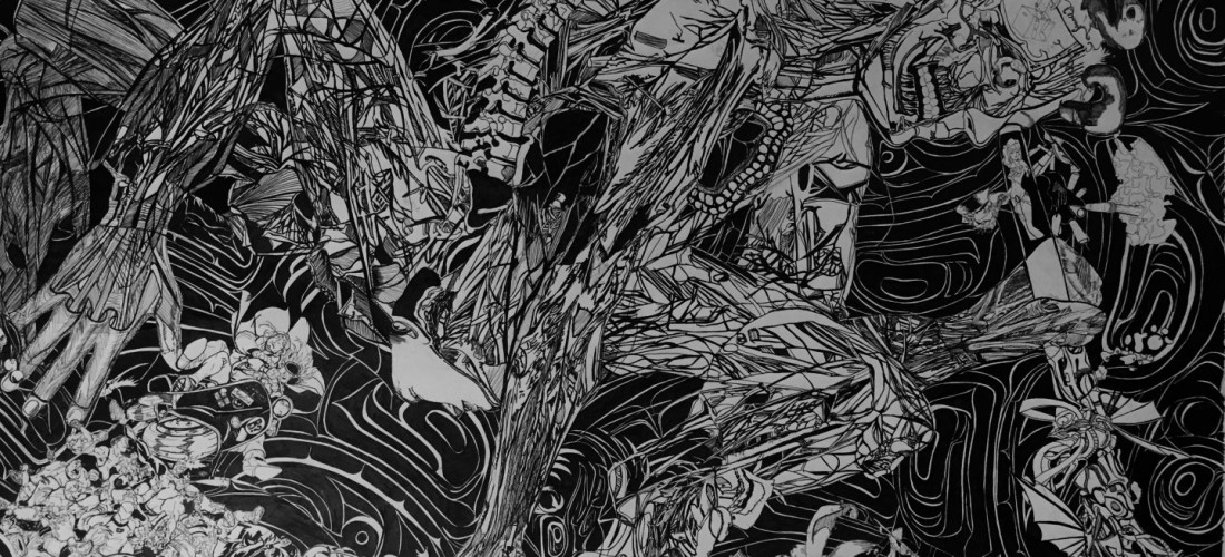 Coupled by her attention to detail, and her willingness to strive for patience each and every day, she draws various stories one pen mark at a time. Soon, such drawings grow to match her in size and over extend past its original size.